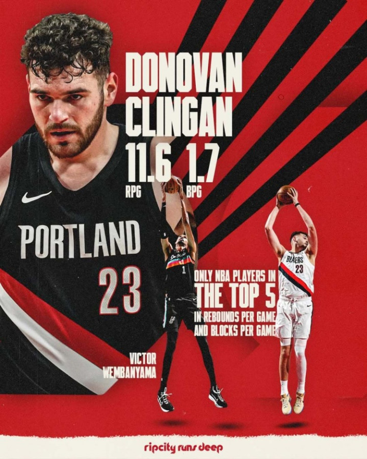 直播吧4月9日讯开拓者官方微博晒出克林根数据海报。