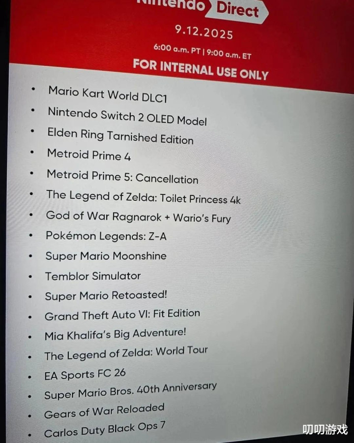这图里面有些明显是开玩笑,像GTA6、银河战士P5、战神、Switch2 OLED版用脚趾头想想都不可能。