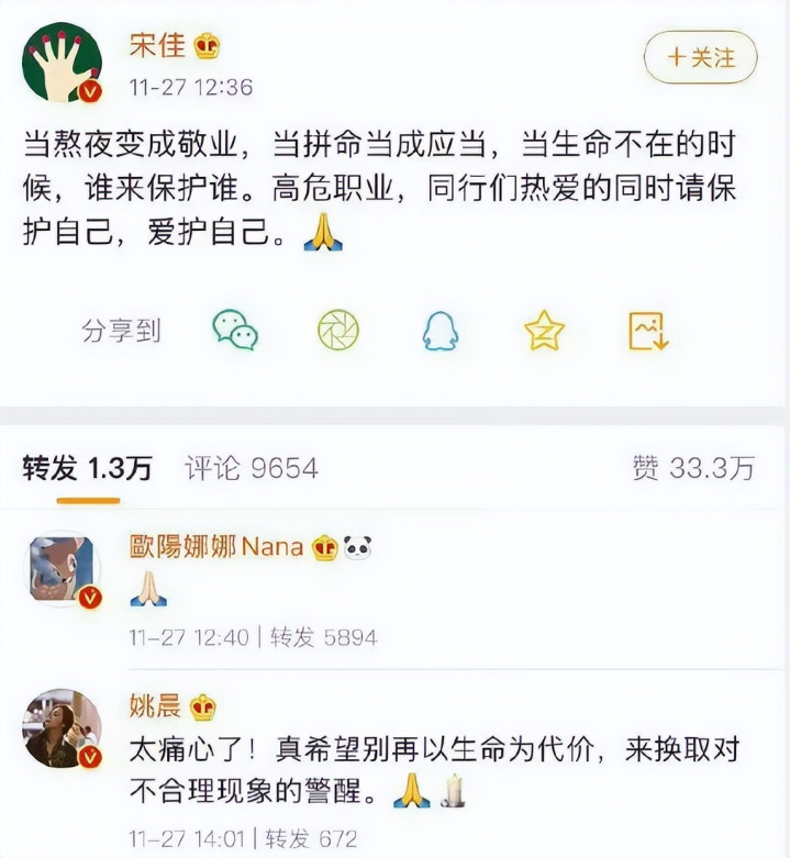 高以翔事件后,宋佳补充“各行各业都请照顾好自己”。