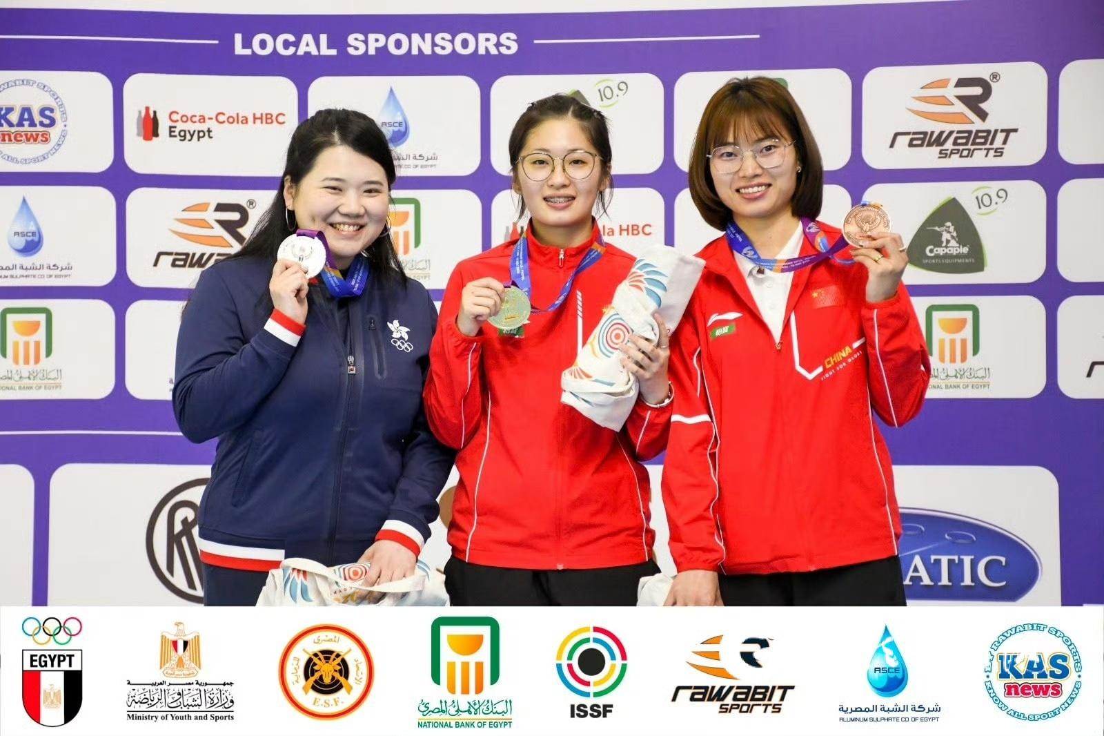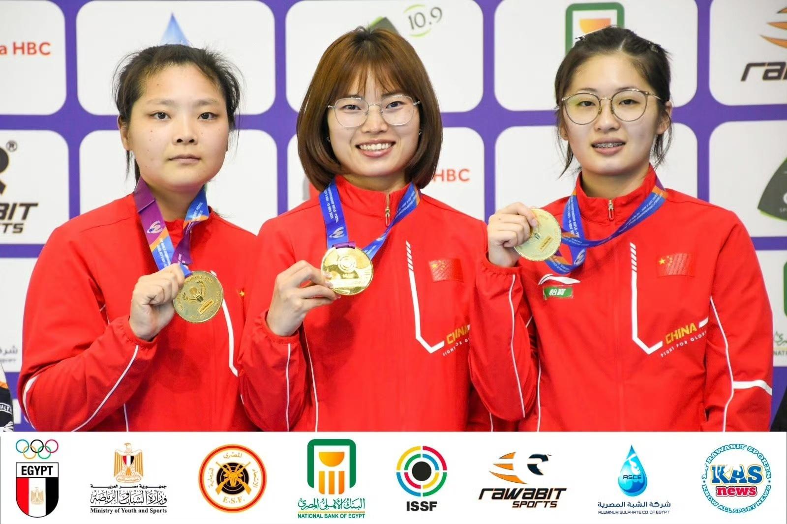 多彩贵州网讯(本网记者 张驰翔)当地时间11月10日,射击世界锦标赛女子十米气手枪团体赛在埃及开罗举行,中国队由贵州选手钱微、安徽选手姚千寻、上海选手姜冉馨搭档组合,三位姑娘状态出色,分别打出585环、584环、583环,以1752环打破世界纪录的成绩夺得团体冠军。此外,在十米个人比赛,钱微获得铜牌。