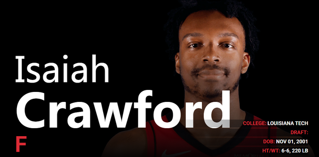 以赛亚-克劳福德23岁身高1米98,他在季前赛场均上场11分钟得到6.8分3.3板1助攻,投篮命中率55%,三分命中率50%。他和谢泼德同一年参加选秀,但是落选了。后来他和国王签下双向合同,上赛季大部分时间都在发展联盟打球,今年夏天和火箭签下双向合同。
