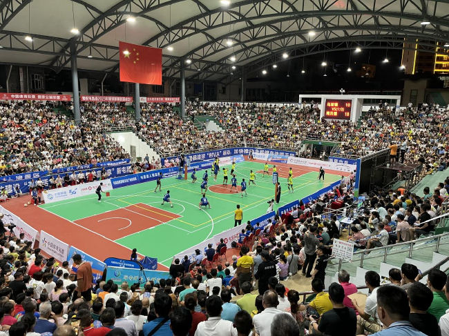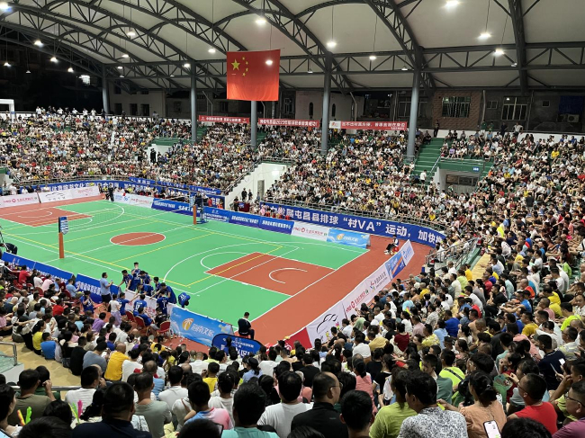 村民变球员、乡亲齐助威,这是从乡村成长起来的赛事最吸引人之处。每一场比赛还没开始,不少球迷已陆陆续续赶来,拿着纸板占据最佳观赛位置,一到节假日,其他市县的球迷专程驱车几十甚至上百公里赶到屯昌观赛,观众席很快被抢占一空。球场外,本地村民搬来竹凳前排就坐,远道而来的游客踮脚围观,连球场周边停放的电动车上都挤满了人。随着比赛开始进行,夜幕下的球场被欢呼声彻底点燃,大家挥舞着手臂,目光紧紧锁定排球运动的轨迹,不自觉地发出观众席上最直接的回应,人们为球员精彩的扣杀大声鼓掌,为球员艰难防守后仍未能挽救排球落地而惋惜,为焦灼的比分而屏气凝神。在每一个球落地的瞬间,一球落地,观众席迅速展开讨论,期待场上的球员发挥出最佳状态。声音嘹亮的“乡村后援团”毫不吝啬他们的夸奖,真诚的为每一支球队的精彩得分呐喊。决赛场也是各乡镇“乡村应援团”的表演场,他们将带来最强应援。