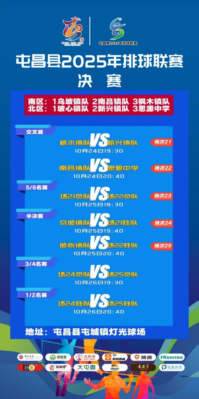六强齐聚,实力伯仲!卫冕冠军的青春风暴将与各乡镇经验老将迎来终极碰撞,胜负悬念尽在毫厘之间。究竟谁能脱颖而出,捧起桂冠?10月24日至26日,屯昌县灯光球场,不见不散!