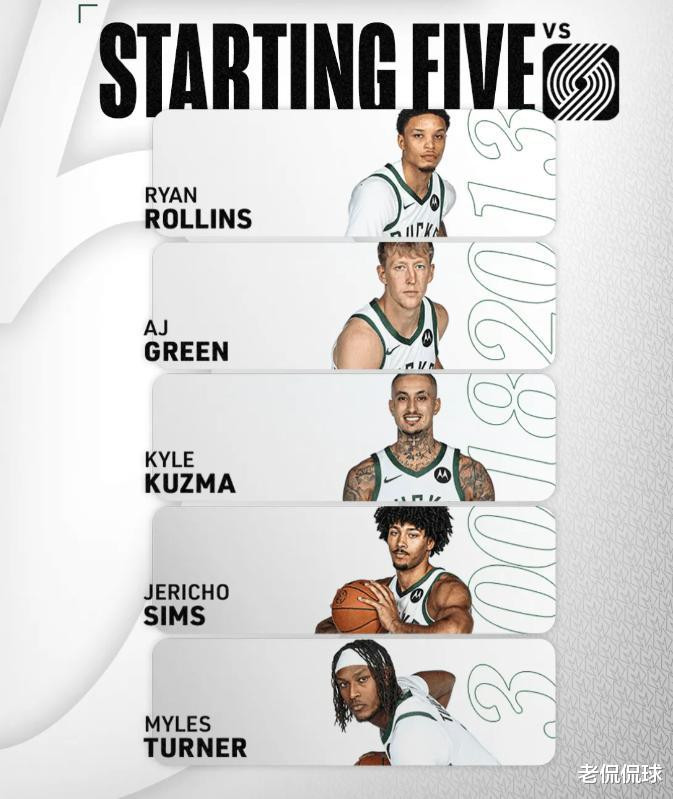 首发阵容方面,雄鹿队这边,字母哥因伤缺战,排出的最新首发五人组为:罗林斯、AJ-格林、库兹马、西姆斯、特纳;开拓者队这边,罗威迎来复出,首发阵容则为:德尼-阿夫迪亚、西迪-西索科、图马尼-卡马拉、杰拉米-格兰特、多诺万-克林根。